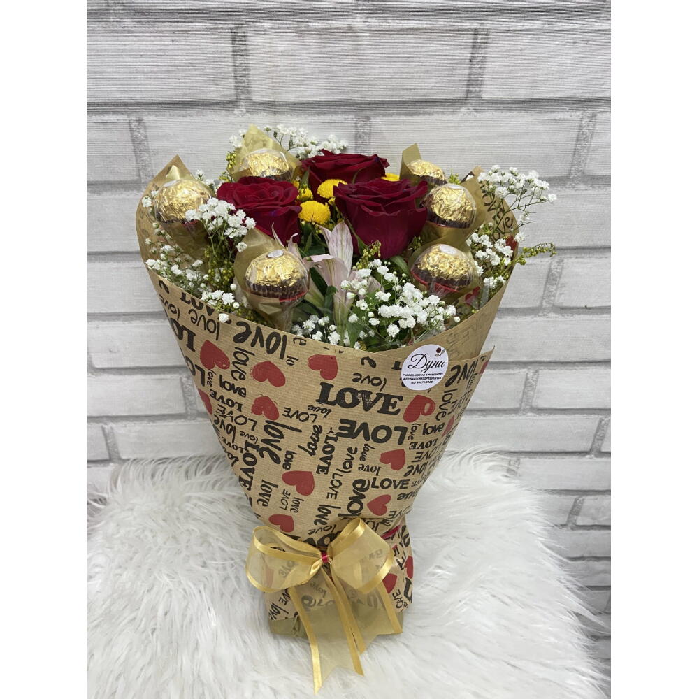 Buquê Com 3 Rosas E 6 Ferrero Rocher