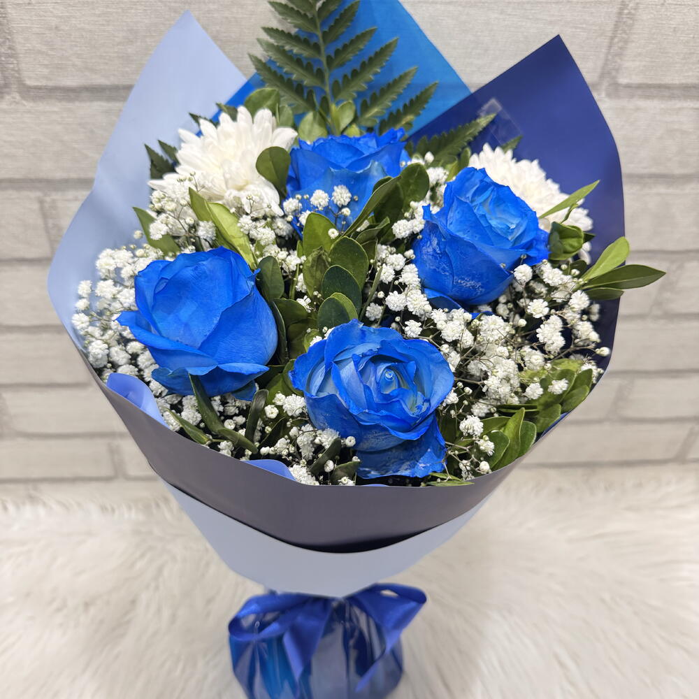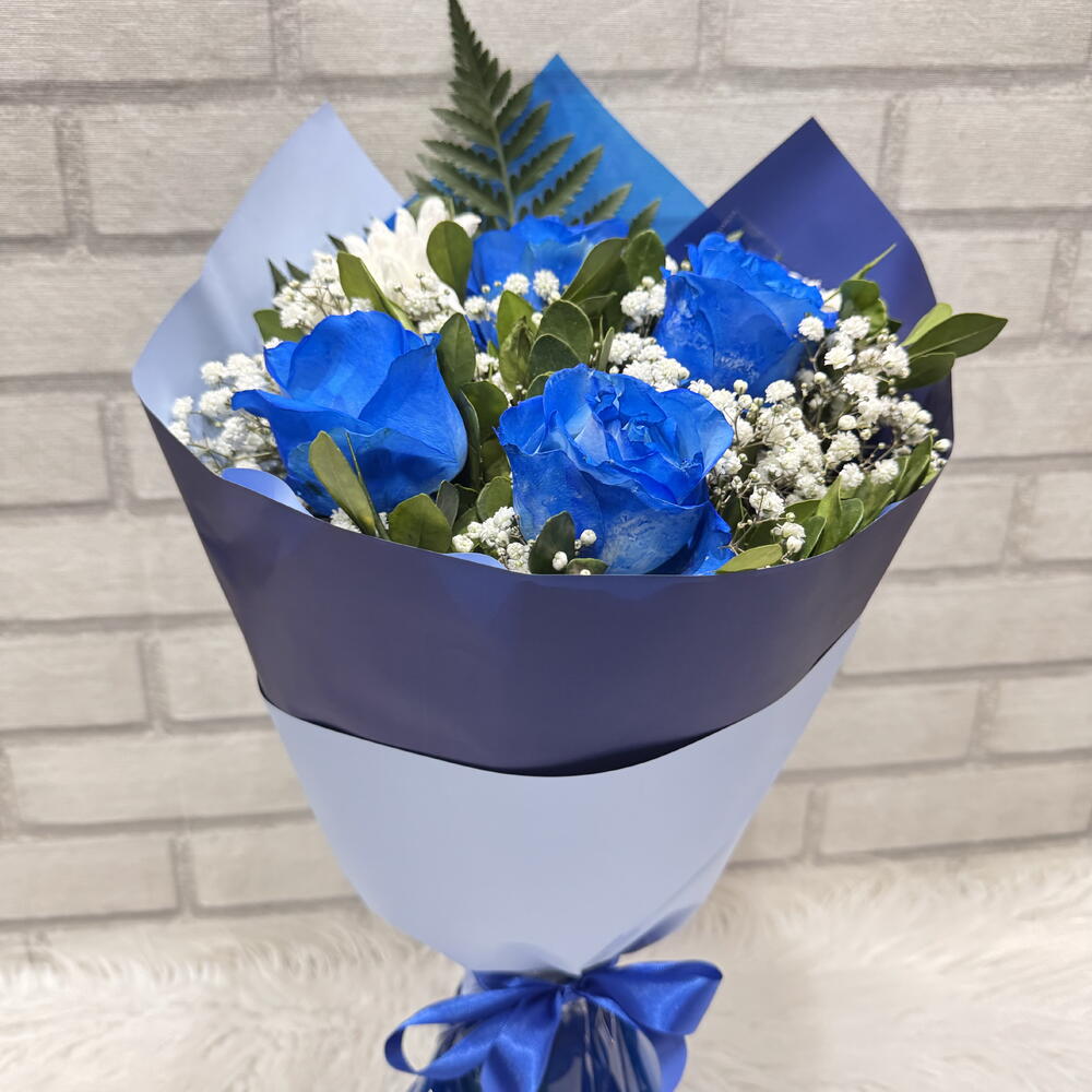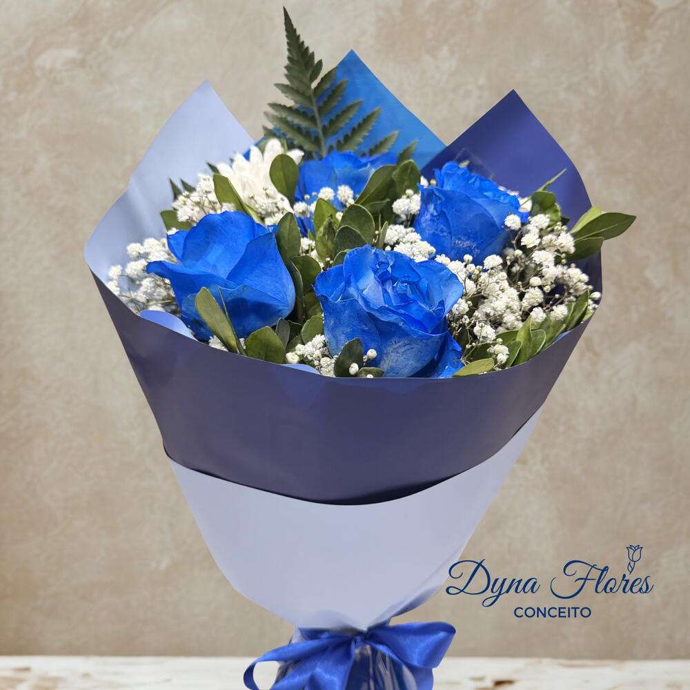 Buquê com 4 Rosas Naturais Azuis