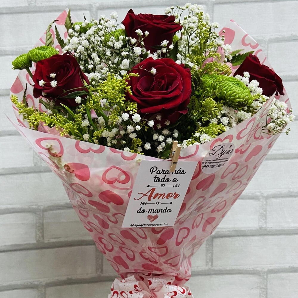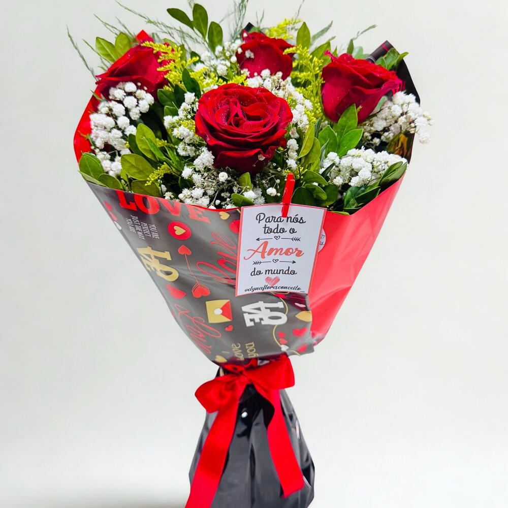 Buquê com 4 Rosas Vermelhas Românticas