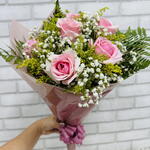 Este encantador buquê se destaca pela sua simplicidade e elegância. Composto por uma unidade de gipsofila, que acrescenta uma delicada nuvem de branco idílico, seis unidades de rosas, trazendo um toque clássico e romântico, e uma unidade de folhagem verde para acrescentar uma pitada de frescura. Esta composição floral é o presente perfeito para expressar os sentimentos mais puros.