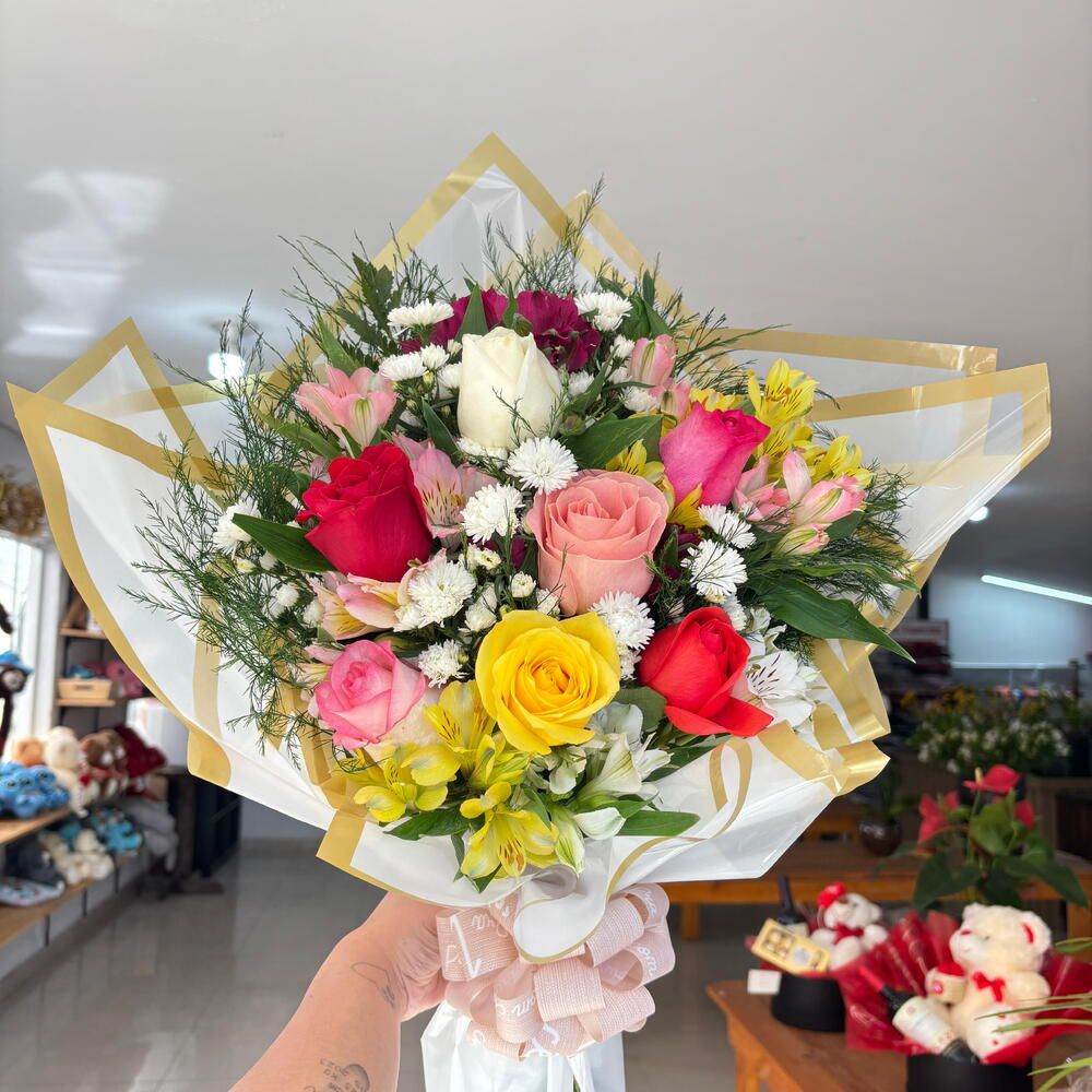 Buquê com 7 Rosas Mistas