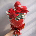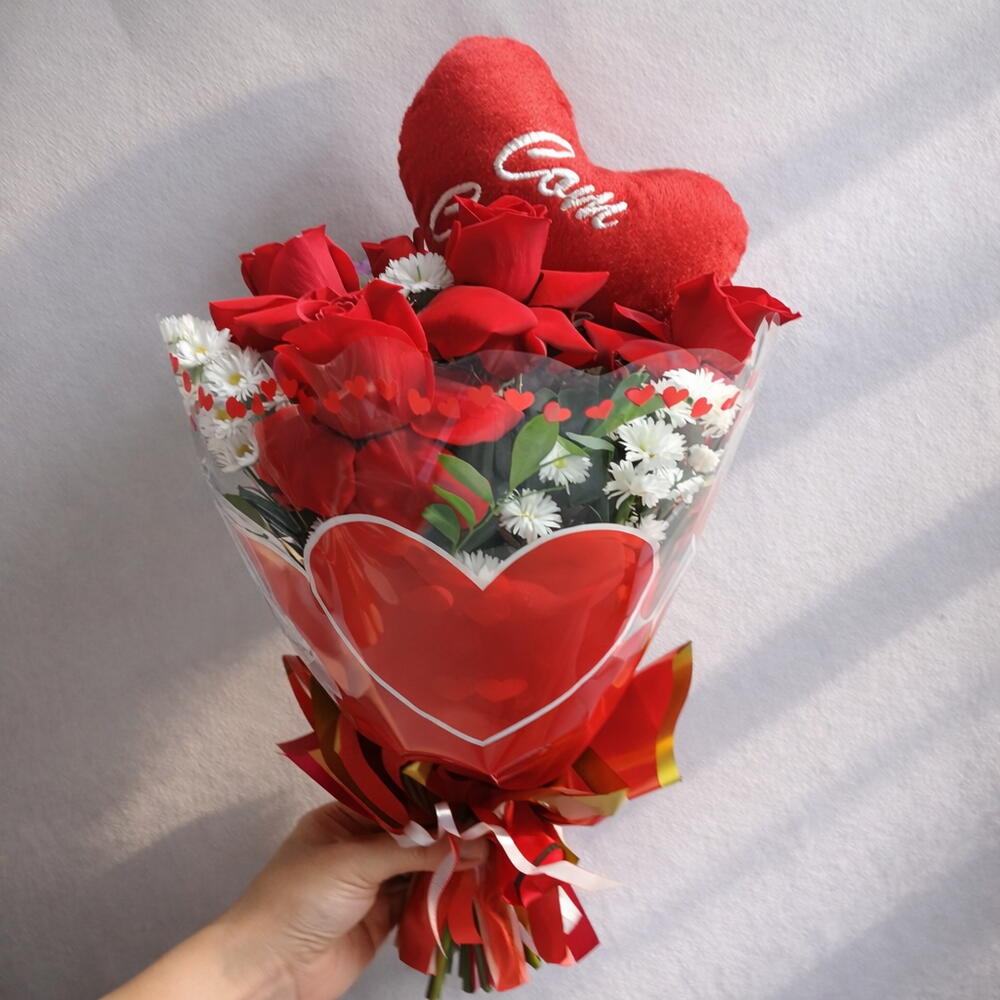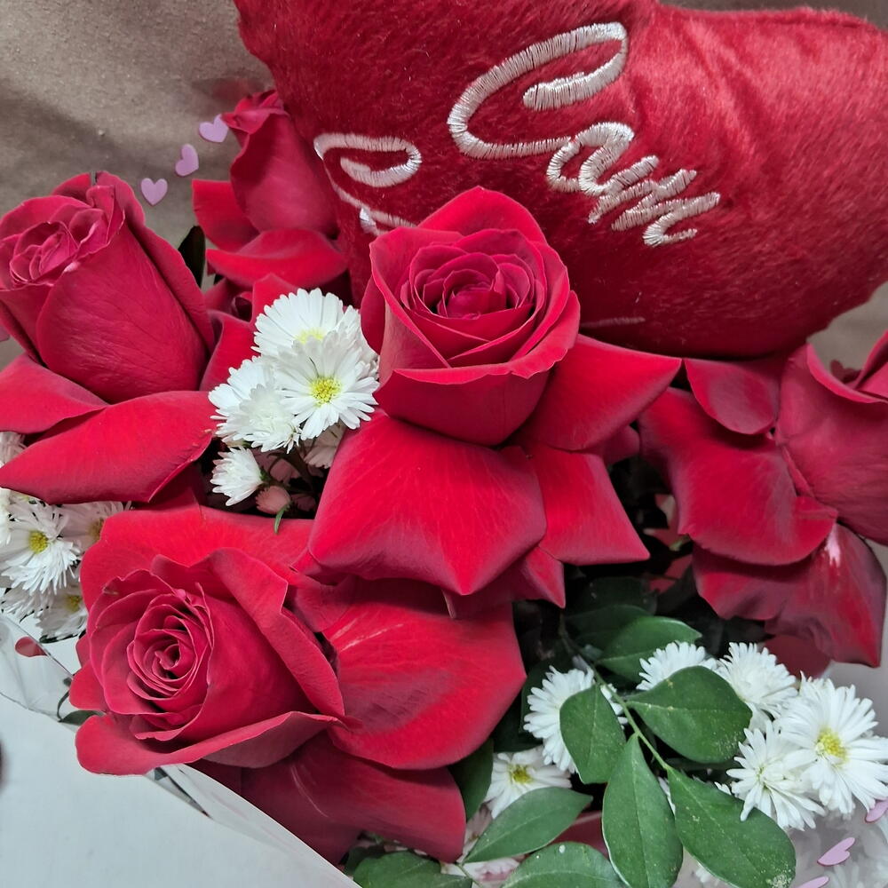 Este lindo buquê irá conquistar o coração de quem o receber! Composto por cinco rosas delicadas, um encantador mini coração de pelúcia, realçado com folhagens verdejantes. A apresentação fica ainda mais sofisticada com uma embalagem especial e um laço elegante. Perfeito para presentear em ocasiões românticas ou simplesmente para demonstrar o seu carinho.