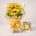Buquê Coreano com 3 Girassois + Ferrero Rocher (4 unidades)