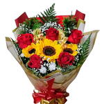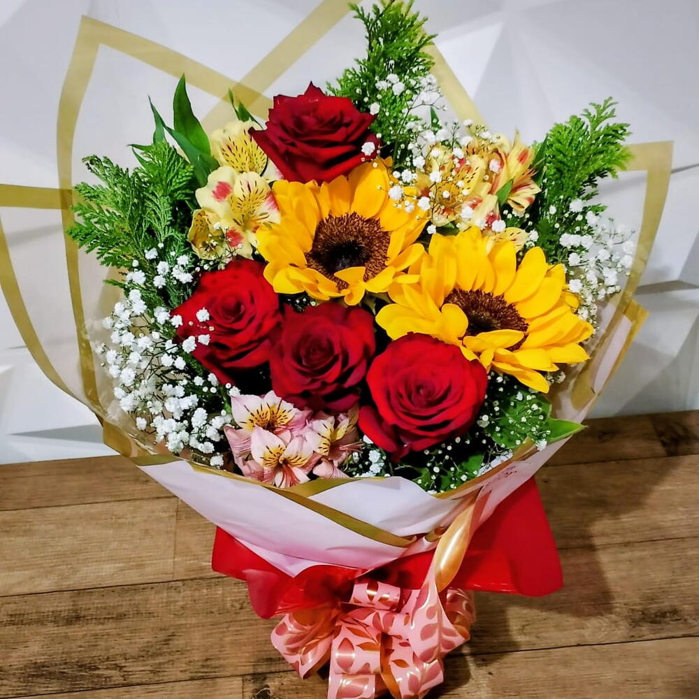 Este incrível buquê é composto por 2 girassóis radiantes e 4 rosas vermelhas sedutoras, embalado com ternura em 1 elegante embalagem. O verde das folhagens adiciona uma pitada refrescante, enquanto o laço cuidadosamente atado cria um acabamento perfeito. Este buquê emocionante não é apenas um produto, mas uma experiência que traz uma explosão de alegria e romance. Adquira agora e torne cada ocasião memorável!