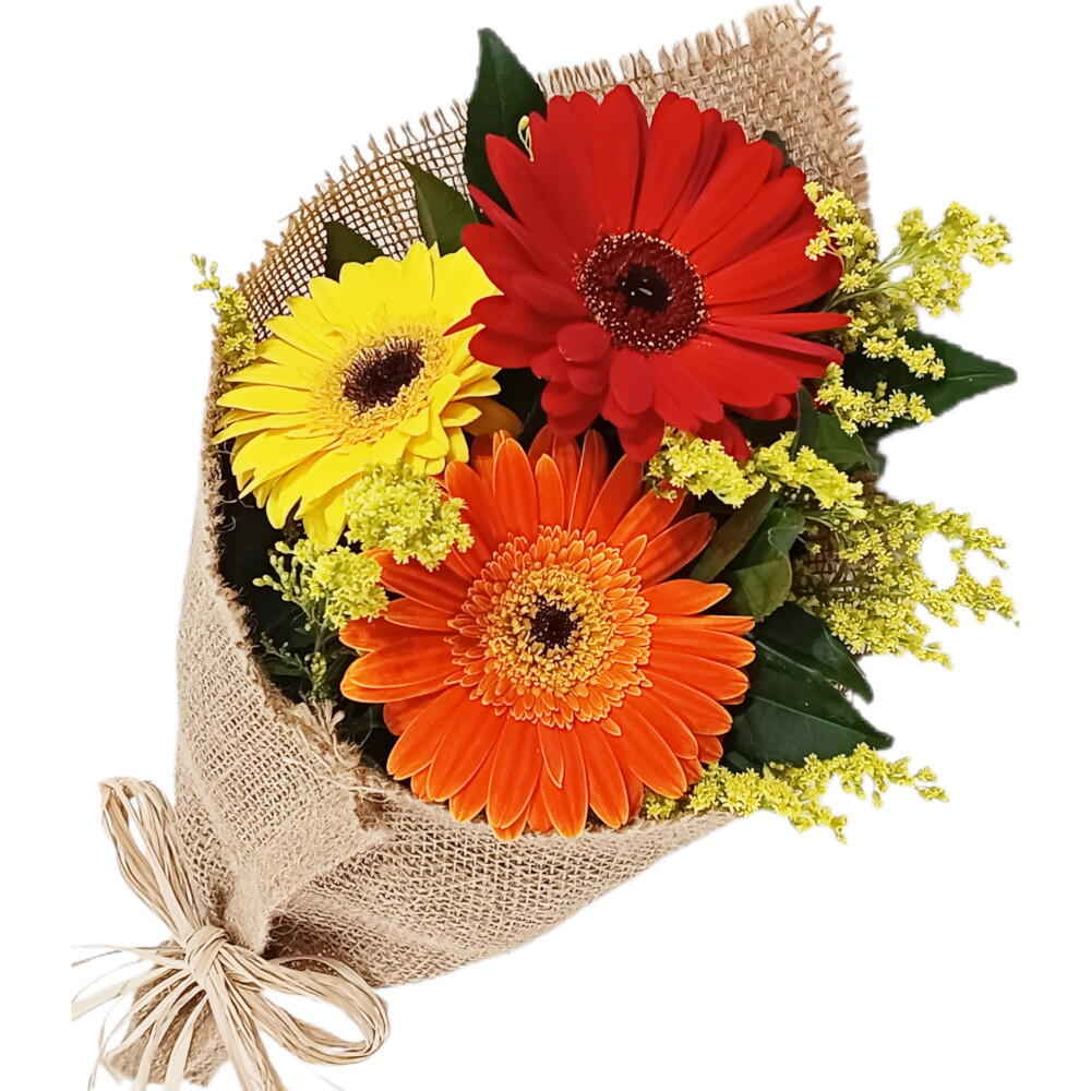 Buquê de 3 Gerberas Coloridas na Juta