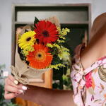 Este elegante buquê é composto por uma unidade de bela tango, acompanhada de uma peça de folhagem para complementar sua beleza. Além disso, possui três unidades de exuberantes gérberas, dando um toque especial de cor e vivacidade ao conjunto. Tudo isso é cuidadosamente embrulhado com um laço de ráfia e envolto em tecido de juta, adicionando um toque rústico que contrasta perfeitamente com a delicadeza das flores. Uma opção perfeita para expressar sentimentos de amor e apreciação.