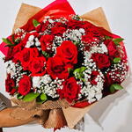 Descubra a beleza majestosa deste deslumbrante buquê de rosas vermelhas. Composto por 30 un. de Rosa Vermelha, esta combinação é uma imagem de luxo e sofisticação, cuidadosamente arranjada e aprimorada por sua embalagem e acompanhamento. Uma escolha perfeita para expressar seu amor ou apreciação incondicional.