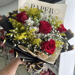 Buquê composto por 4 rosas frescas, cuidadosamente selecionadas e arranjadas com folhagens que realçam sua beleza natural. Um presente simples e elegante para demonstrar amor, gratidão ou amizade em qualquer ocasião.