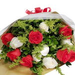 Desperte os sentidos com um buquê deslumbrante, ricamente decorado com seis radiantes rosas laranjas e seis puras rosas brancas. Destaca-se um toque de tango, proporcionando um elemento de surpresa e sofisticação. Cada buquê é elegantemente embalado e habilmente concluído com um laço, tornando-o o presente perfeito para aquele alguém especial, ou uma indulgência para si mesmo. Deixe a beleza da natureza abraçar o ambiente com elegância, graciosidade e vitalidade.
