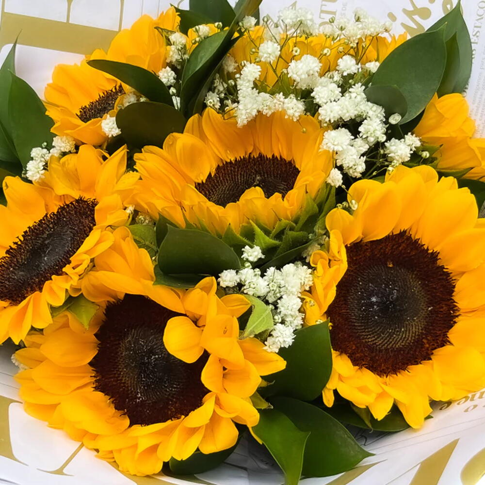 Nada representa mais a força e a alegria de uma mulher do que um buquê de girassóis vibrantes! Presenteie com essa explosão de cor e energia para iluminar o dia de alguém especial. Girassóis exuberantes e frescos, representando luz e positividade. Detalhes delicados, como gypsophilas e folhagens, para um toque especial. Ideal para expressar gratidão, carinho e admiração