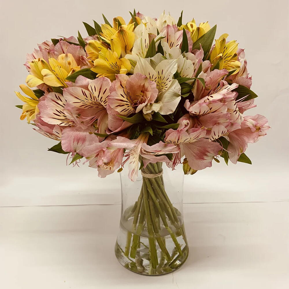 Descubra a beleza vibrante com estas 20 alstroemerias coloridas, artisticamente arranjadas em um vaso elegante. Cada flor foi selecionada a mão com o propósito de criar uma exibição deslumbrante que traz um toque de cor e elegância a qualquer espaço. Este arranjo é a escolha perfeita para alegrar a sua casa ou como presente para alguém especial.