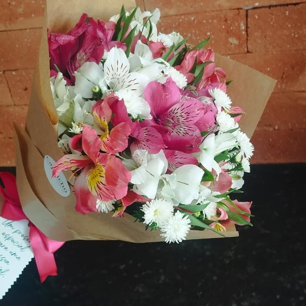 Coloridas e delicadas, as astromélias são flores que representam a amizade o carinho e o respeito. Nosso buquê é colorido e cheio de charme para tornar o dia de um amigo ou um amor ainda mais especial. Composto por: 15 hastes de astromélias coloridas Embalagem (jornal especial) Laço