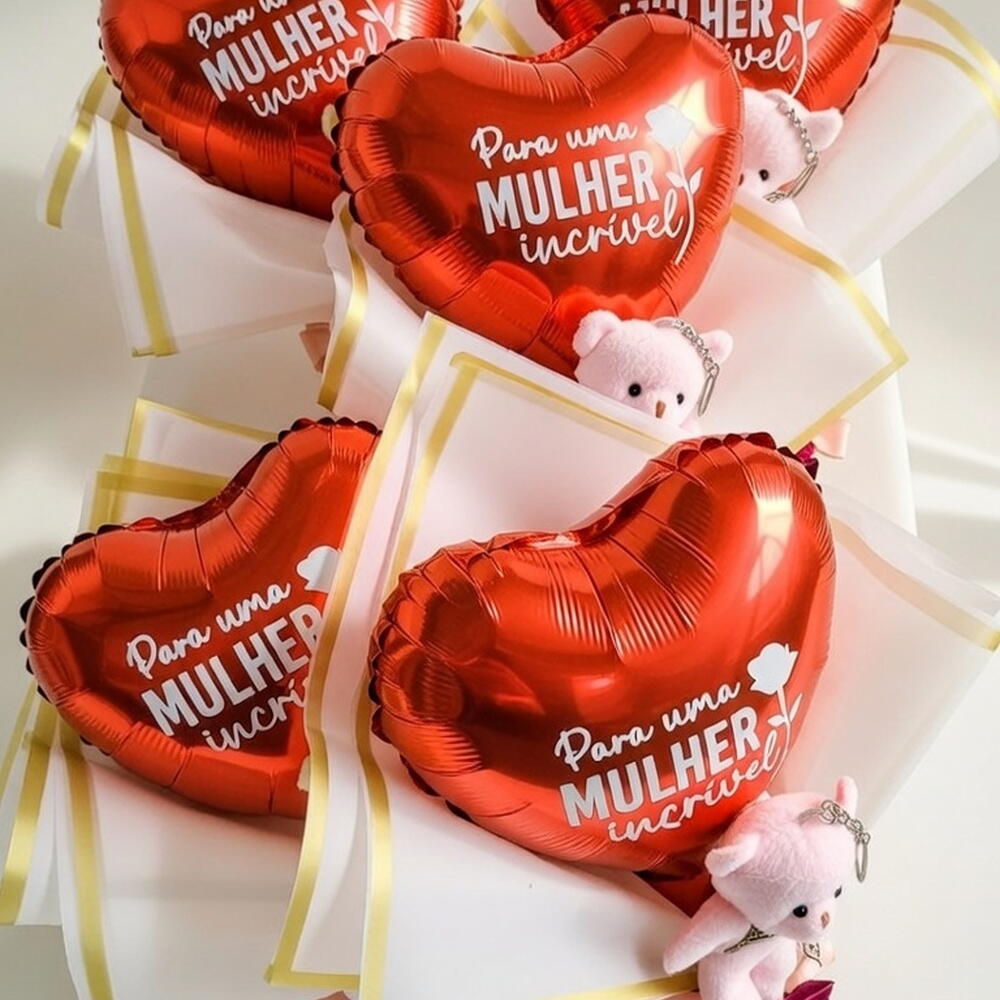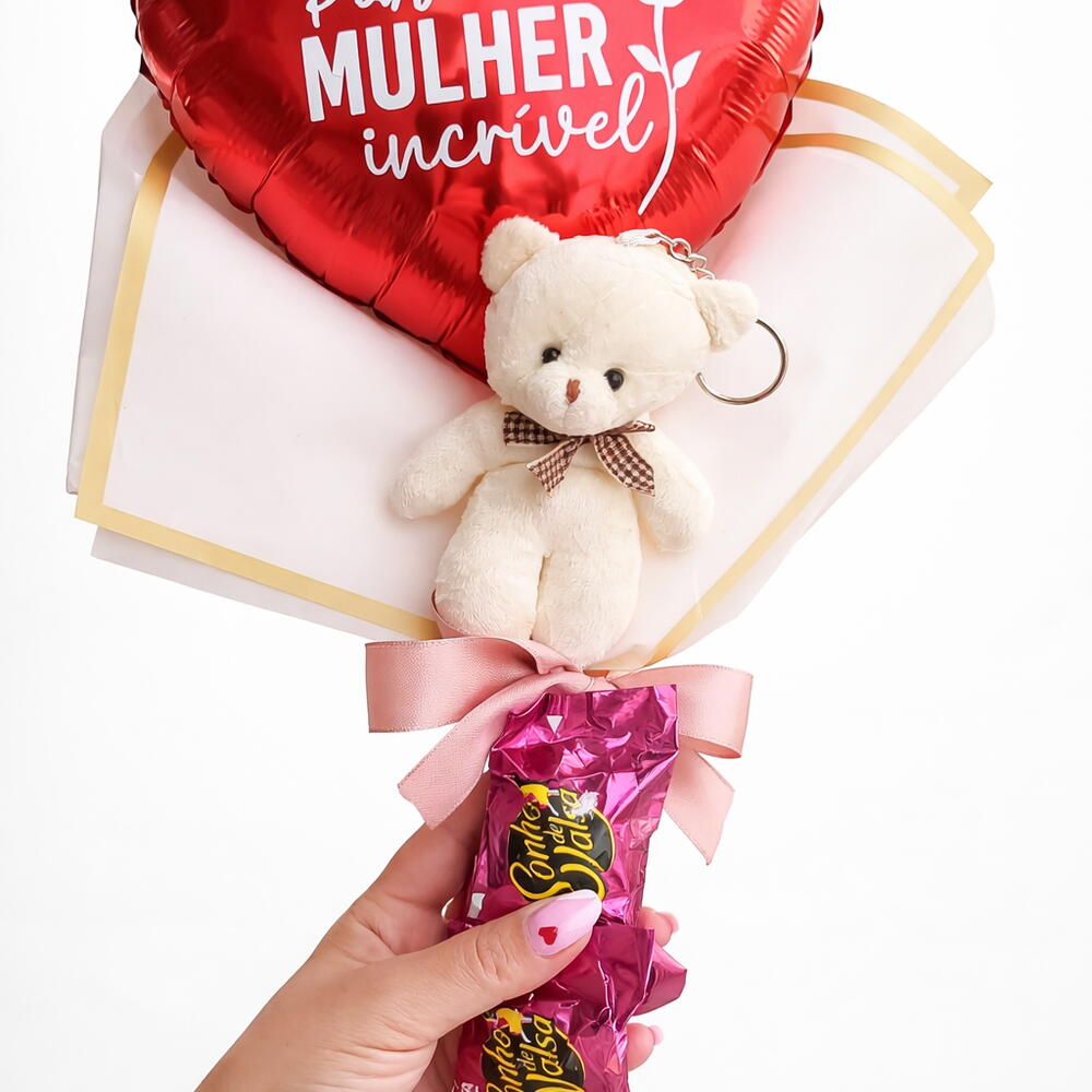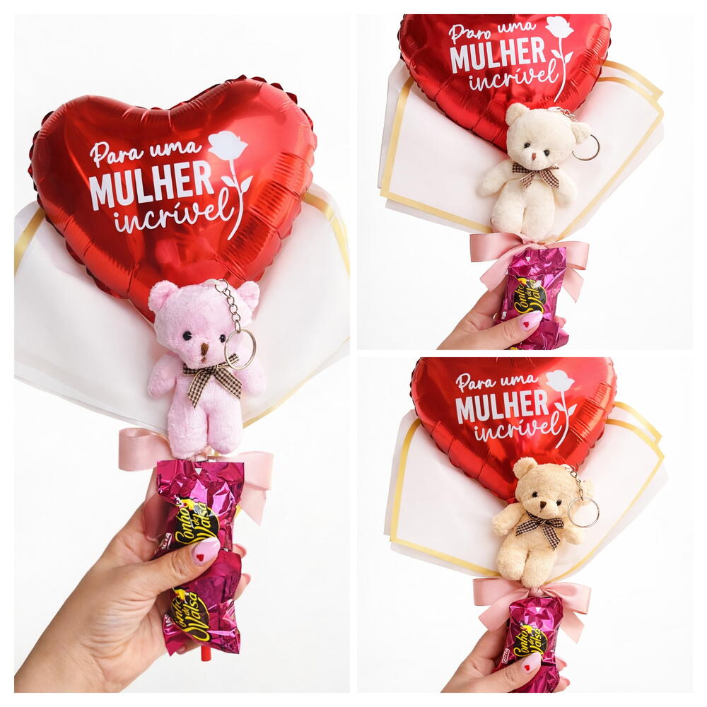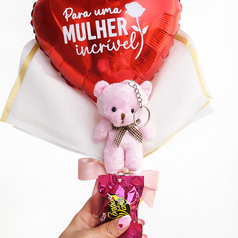 ✨ Surpreenda uma mulher incrível com um presente cheio de carinho! ✨ Nosso buquê especial para o Dia das Mulheres vem com: ❤️ Balão em formato de coração com mensagem linda 🧸 Ursinho fofinho que também é chaveiro 🌹 Toque delicado com uma rosa branca 🍫 E um delicioso Sonho de Valsa para adoçar o dia! Perfeito para demonstrar todo o seu amor e admiração. Garanta já o seu e faça esse dia inesquecível! 💖 📩 Encomendas já/entrega rápida Personalizamos o balão como preferir so nos enviar no chat