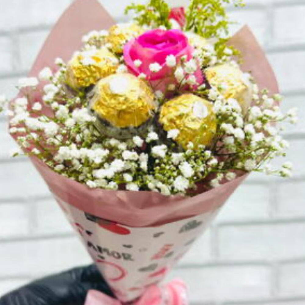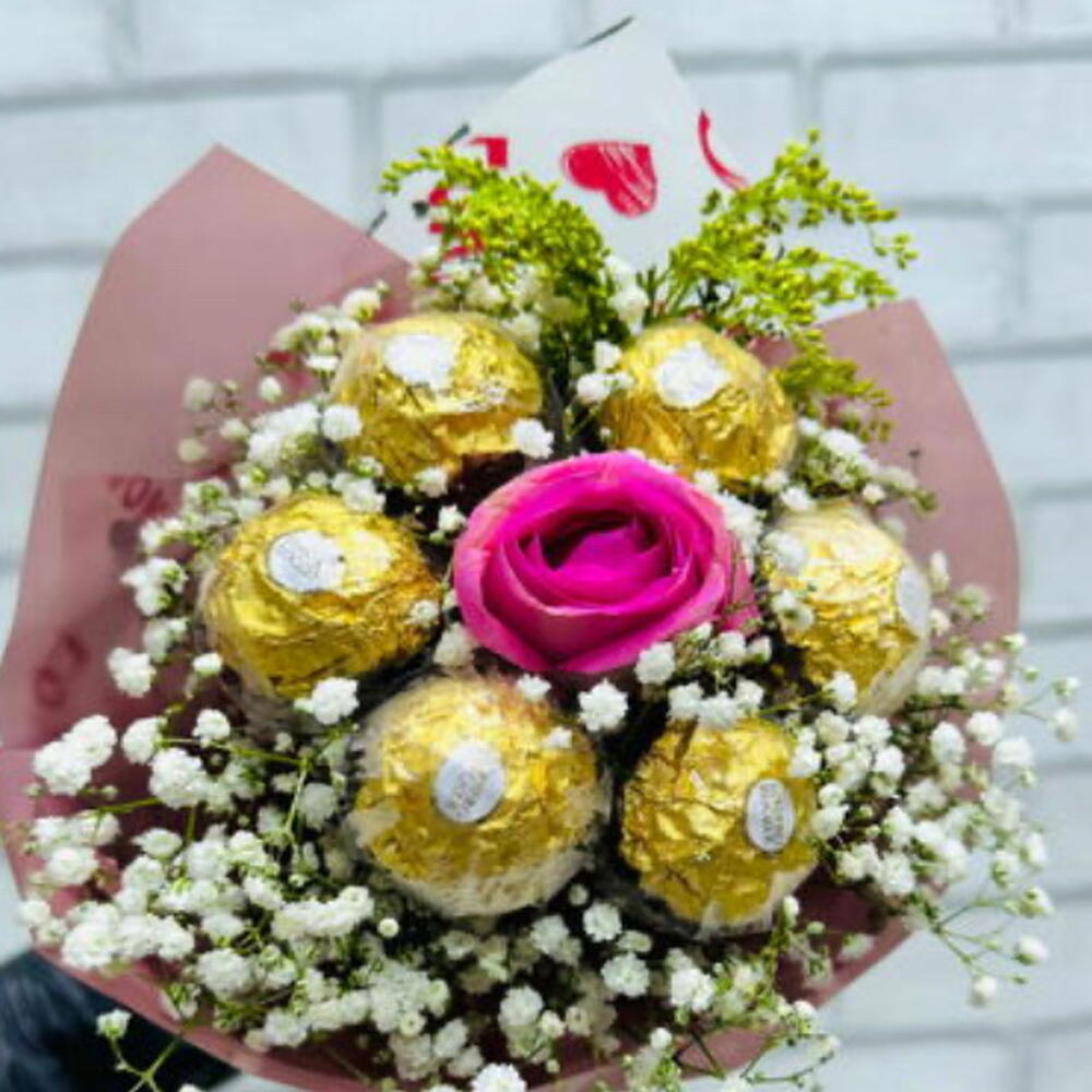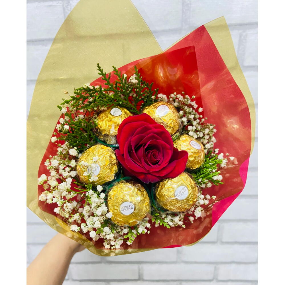 Uma combinação sofisticada e irresistível que une a delicadeza de uma rosa encantadora ao sabor inconfundível dos bombons Ferrero Rocher. Embalado com elegância, esse buquê é perfeito para expressar carinho, amor e gratidão em qualquer ocasião especial.