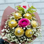 Buquê De Bombons Ferrero Rocher Com Rosa