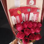 Este buquê sofisticado e encantador contém 12 belas rosas vermelhas, representando amor e paixão. Para complementar ainda mais, conta com 3 deliciosas barras de chocolate Nestle que prometem adoçar o dia de qualquer um. Tudo isso vem gentilmente organizado em uma embalagem elegante, destacada por um laço delicado. Ideal para um presente amoroso, aniversário ou simplesmente para mostrar o quanto você se importa.