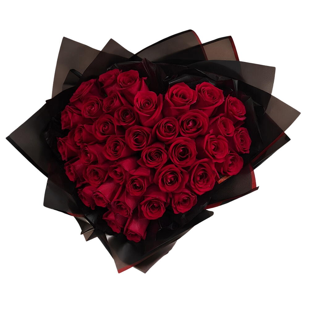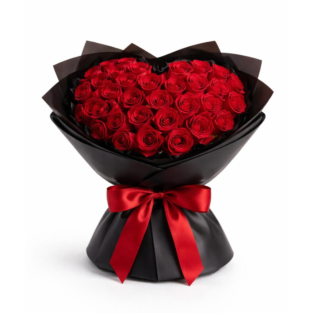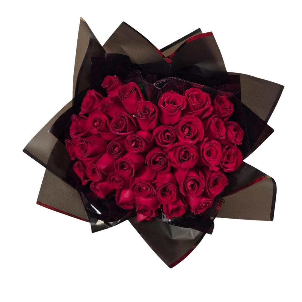 Este buquê deslumbrante é composto por 20 rosas requintadas, habilmente agrupadas numa embalagem elegante. O laço em cetim adiciona um toque final sofisticado, tornando-o perfeito para comemorações especiais ou simplesmente para alegrar o dia de alguém.