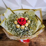 Buquê de Ferrero com 1 Rosa Vermelha