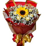 Encante com este buquê deslumbrante de girassol, rodeado por delicadas flores de mosquitinho e irresistíveis chocolates especiais. A combinação perfeita do vermelho e dourado traz sofisticação, paixão e elegância em cada detalhe. Um presente criativo e marcante para surpreender em qualquer ocasião especial.