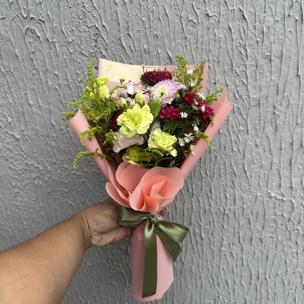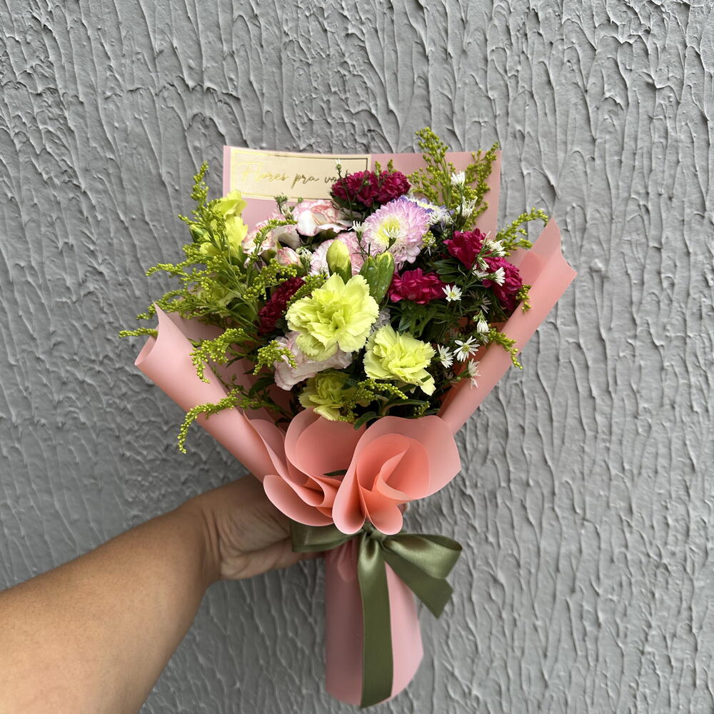 embalagem - 1 un. folhagens - 1 un. laço - 1 un. mix de naturais - 8 un.