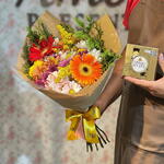 Descubra a beleza do Buquê de Flores do Campo da Amor Presente. Um buquê bem volumoso, composto por cerca de 12 hastes de flores do campo, com gérberas e margaridas coloridas, além de folhagens rústicas que trazem leveza e elegância ao arranjo, formando um buquê de tamanho médio. Acompanha 01 caixa de Ferrero Rocher com 4 unidades, tornando o presente ainda mais especial e completo.