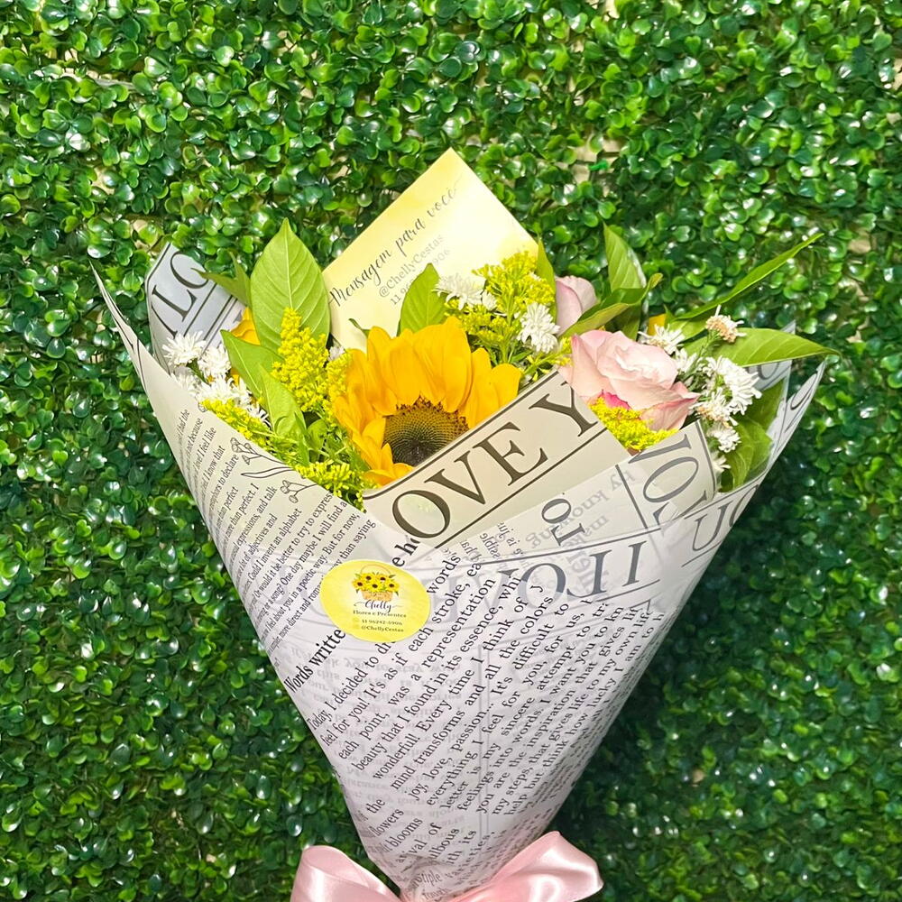 Encante com a luz e a doçura do nosso buquê Raio de Amor. Uma composição vibrante que une a energia do girassol com a delicadeza das rosas em tons pastel e o charme das flores do campo. Envolto em um papel elegante com mensagens de amor, esse arranjo é perfeito para iluminar o dia de alguém especial com afeto, cor e boas vibrações. Ideal para declarações românticas, aniversários ou para transformar um simples momento em algo inesquecível.