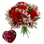 Buque de Gerberas com Astromelias e Bombom Viermon