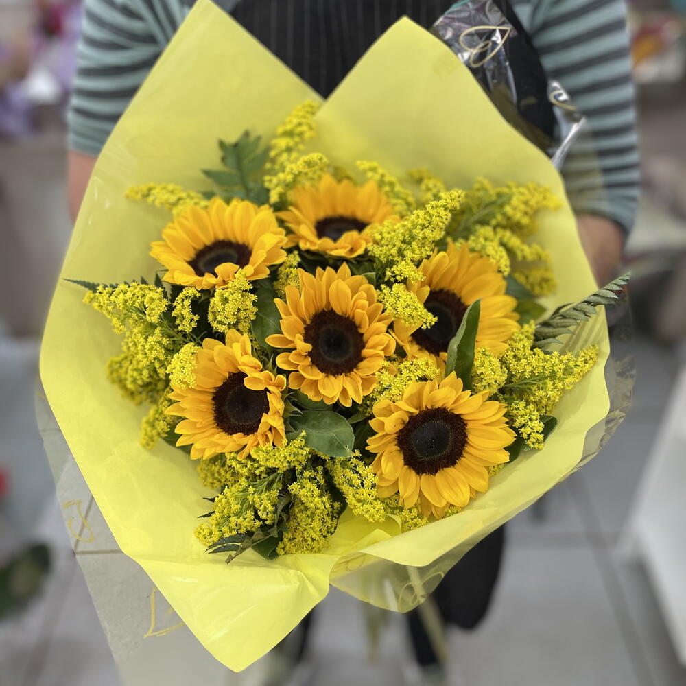 Este buquê deslumbrante é composto por 5 unitades da vibrante flor tango e 6 unitades radiantes de girassol, todos cuidadosamente embalados em uma embalagem sofisticada. Para um charme extra, o buquê é finalizado com um laço elegante. Perfeito para transmitir amor, alegria e admiração, este buquê é uma escolha perfeita para qualquer ocasião.