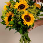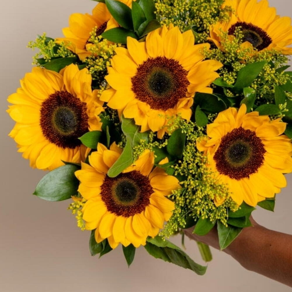Descubra a alegria de presentear com esta magnífica combinação de beleza natural e indulgência gourmet. Composta por 1 unidade de folhagem exuberante, 6 unidades de girassóis brilhantes, um laço decorativo, todo envolto numa embalagem de celofane para realçar sua elegância. Para encantar ainda mais, este presente inclui 1 unidade de bombons Ferrero Rocher c8, trazendo uma experiência de sabor irresistível.