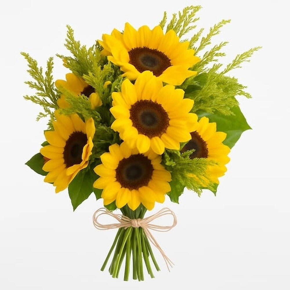 Desperte sorrisos e encante corações com este deslumbrante Buquê. Composto por 6 radiantes girassóis, que simbolizam lealdade e longevidade, uma pitada de folhagem para adicionar textura e profundidade e um laço rústico de ráfia para um toque final de elegância. Este buquê é um presente ideal para expressar sentimentos de amor, apreço e admiração.
