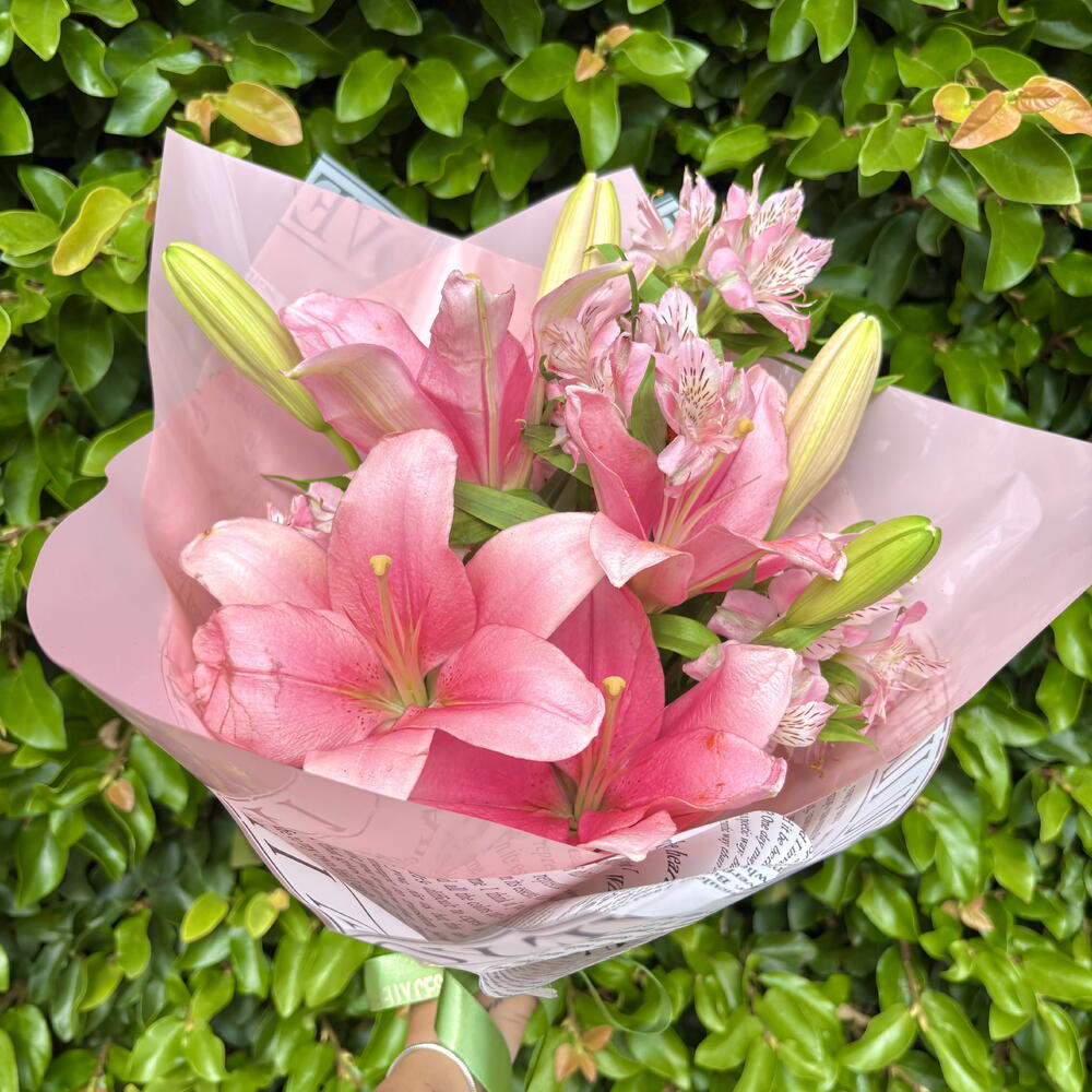 Encante-se com este belíssimo buquê, cuidadosamente preparado para te surpreender! Composto por uma charmosa embalagem para presente, destacando-se com sua elegância impecável. Possui três unidade de lírios, simbolo de pureza e beleza, além de cinco unidades de astromélias, flores que representam a amizade eterna. Com todo este cuidado nos detalhes, certamente é o presente perfeito para transformar qualquer momento em uma ocasião especial.