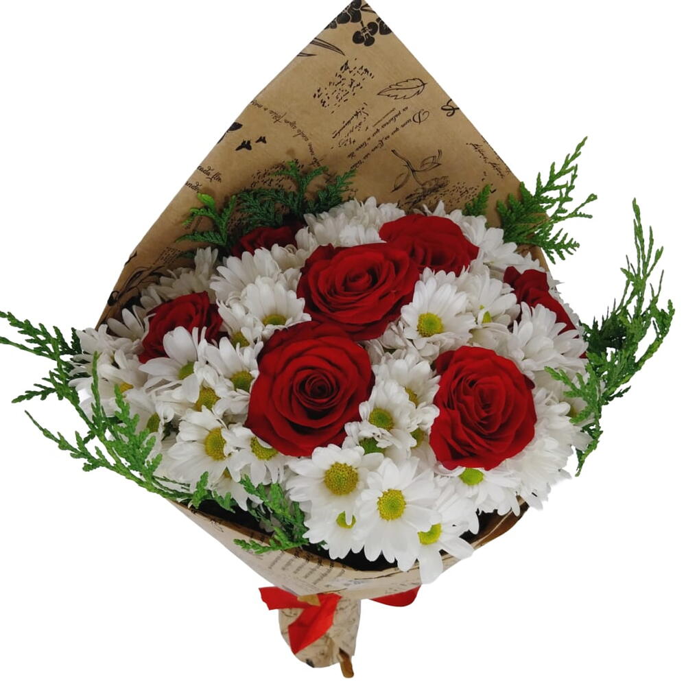 Este buquê encantador é composto por 8 vibrantes margaridas e 6 rosas importadas, adicionando um toque de elegância. Complementado por 5 unidades do aromático cedro maçã, este buquê é a escolha perfeita para expressar sentimentos de amor e apreciação. Cada buquê é cuidadosamente embalado e preso com um laço, tornando-o um presente pronto para entrega.
