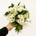 Encante-se com este lindo buquê de tamanho P, composto por delicadas margaridas brancas. Para completar sua beleza cativante, ele vem com um incrível laço de ráfia incluído. Perfeito para presentear alguém especial ou embelezar qualquer ambiente.