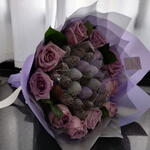 rosa - 10 un. embalagem - 2 un. folhagens - 3 un. laço - 1 un. morangos com cobertura - 30 un.