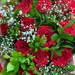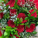 rosa - 12 un. embalagem - 1 un. folhagem - 10 un. laço - 1 un. gipsofila - 5 un.