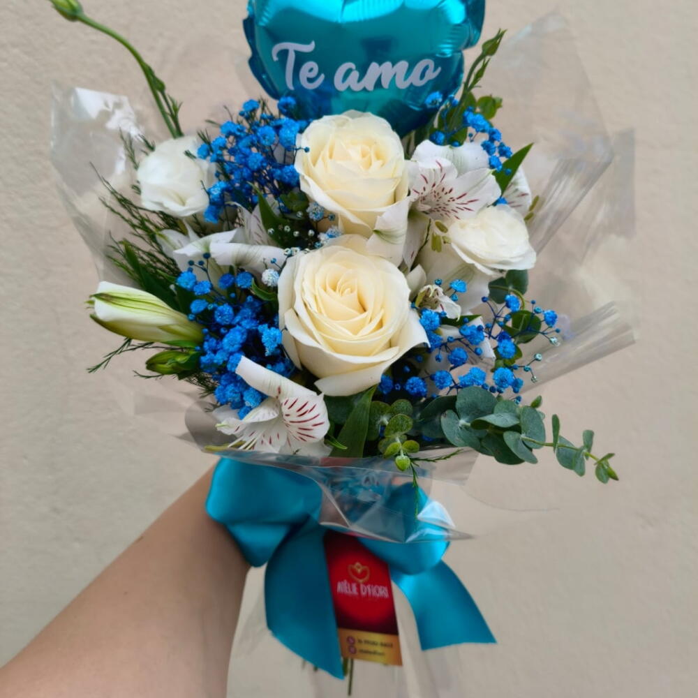 O buquê Azul Eterno combina a pureza das rosas brancas com a suavidade das flores azuis, criando uma composição que transmite paz, carinho e elegância. O mini balão azul acrescenta um toque de encanto e leveza, tornando o buquê ainda mais especial. Um presente atemporal, perfeito para celebrar momentos únicos, demonstrar afeto ou marcar ocasiões cheias de significado com delicadeza e sofisticação.