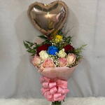 balão metalizado - 1 un. rosa vibrantes - 8 un. folhagem luxuriante - 1 un.