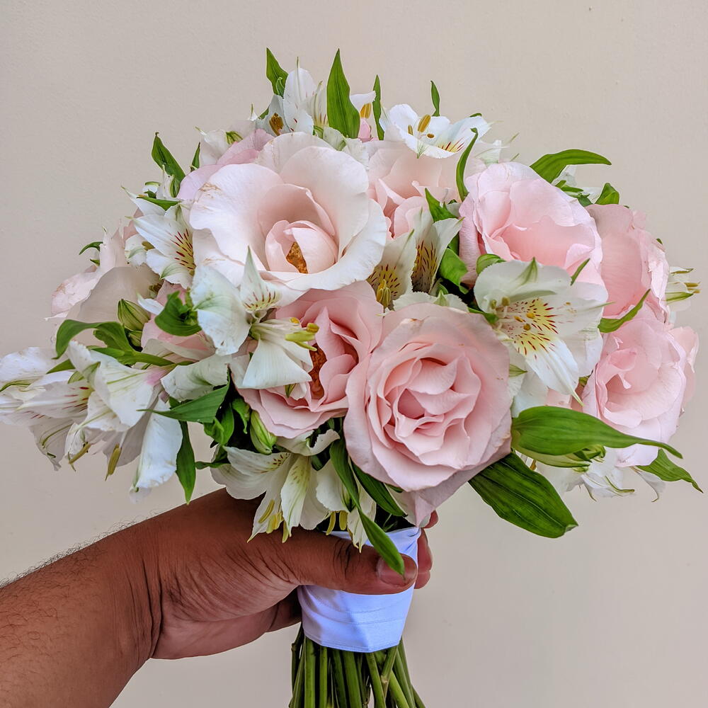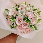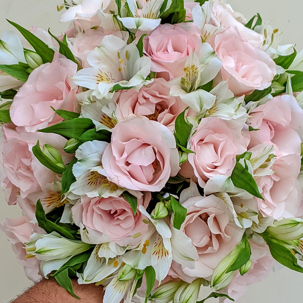 Buquê de Rosas Cor-de-Rosa e Astromelias