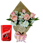 Buquê de Rosas e Astromelias com Chocolate Lindt Lindor