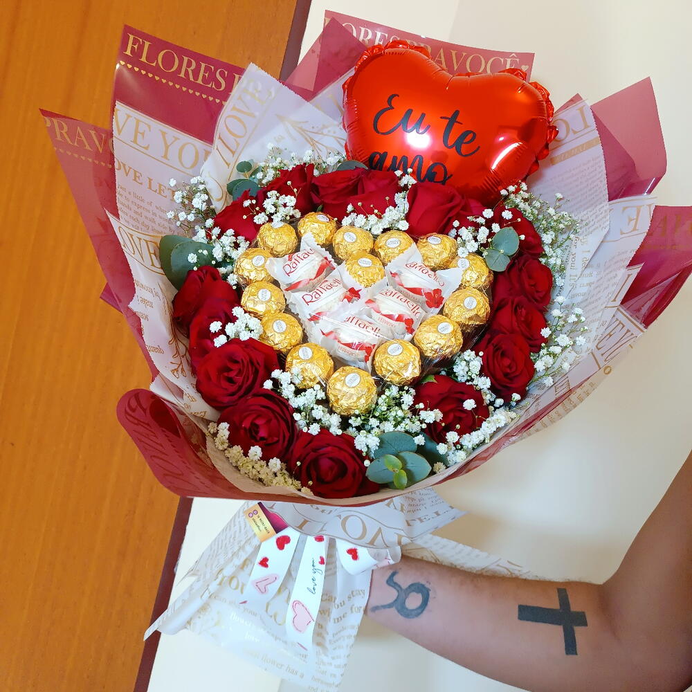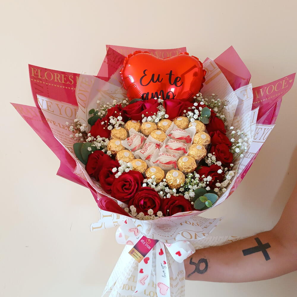 O Coração de Luxo Apaixonado é mais do que um presente é uma declaração intensa de amor. Um buquê grande e imponente, composto por exuberantes rosas vermelhas, símbolo da paixão profunda, cuidadosamente dispostas ao redor de um sofisticado coração de chocolates Ferrero Rocher e Raffaello, que traduzem o requinte e a doçura desse gesto inesquecível. Cada detalhe foi pensado para impressionar, emocionar e eternizar momentos especiais. Ideal para surpreender em datas marcantes, pedidos de perdão, declarações de amor ou simplesmente para dizer “eu te amo” da forma mais elegante e intensa possível. Um presente que fala por si, envolve os sentidos e transforma sentimentos em memória.
