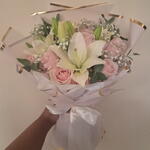 rosa rosa - 10 un. lírio brancos - 2 un.