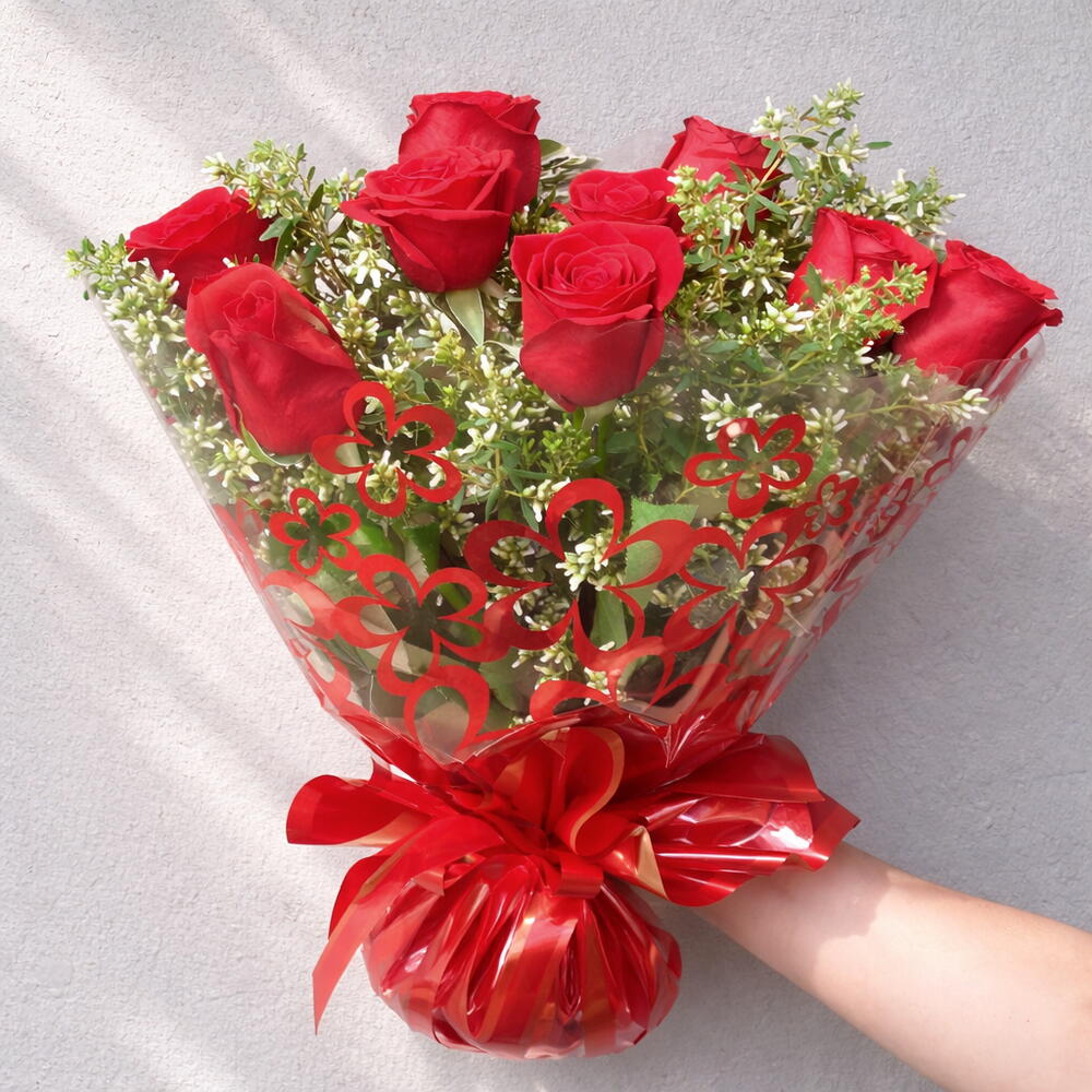 Descubra a elegância atemporal neste lindo buquê, composto por nove rosas colombianas deslumbrantes, complementadas com uma unidade de folhagens verdes. O arranjo é delicadamente embalado em celofane transparente, garantindo a visibilidade das flores, e amarrado com um laço charmoso. Perfeito para expressar sentimentos de amor, admiração e respeito.