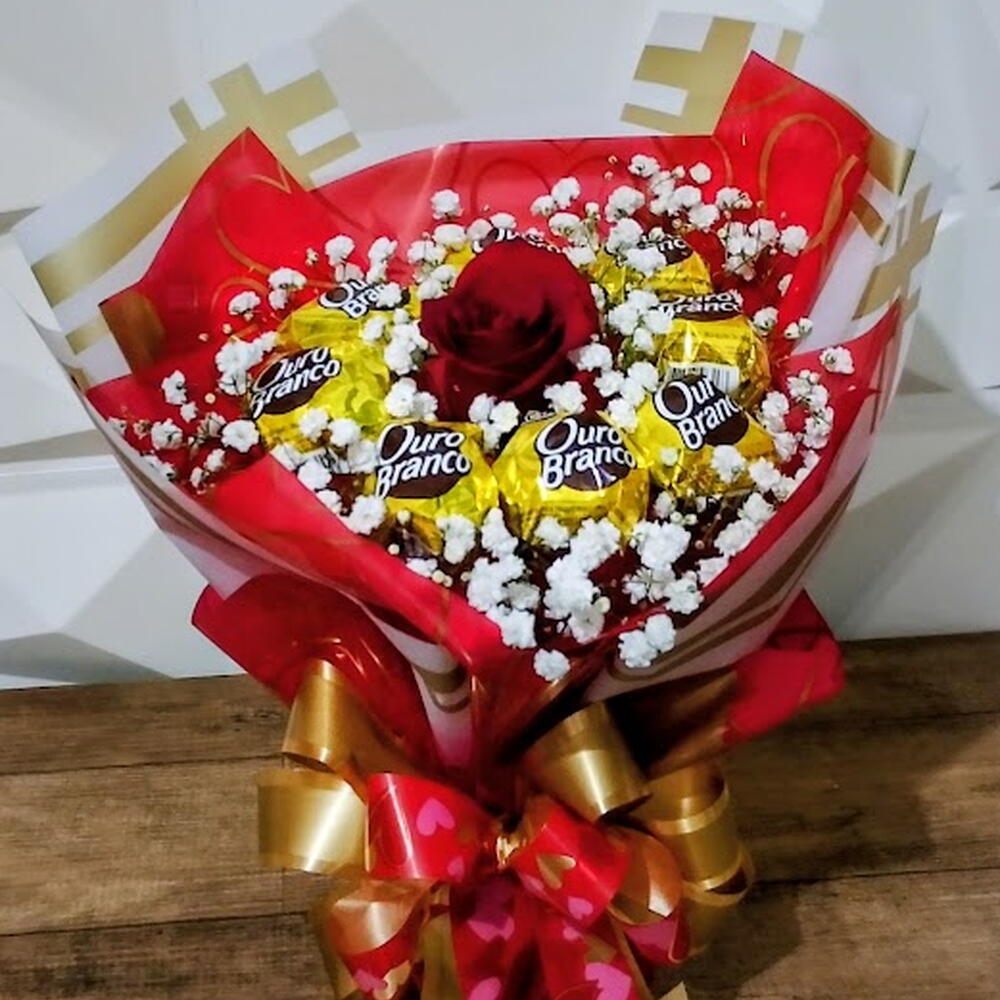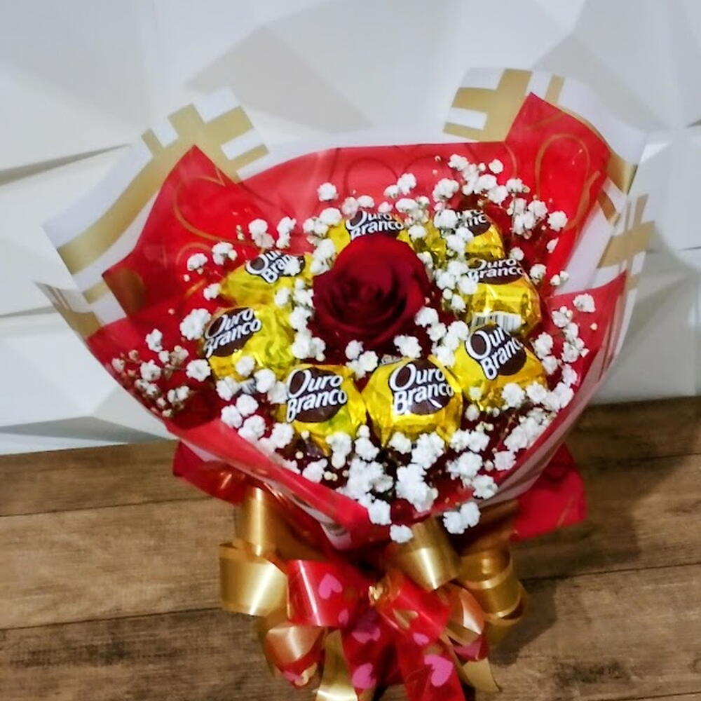 Buquê de Ouro Branco com 1 Rosa