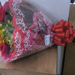 folhagens - 3 un. girassol - 1 un. rosa importadas - 4 un.