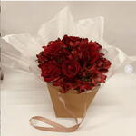rosa vermelhas - 5 un. alstroemerias vermelhas - 10 un. caixa em formato de bolsa - 1 un.