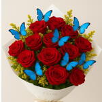 Um buquê apaixonante com 12 rosas vermelhas intensas, símbolo de amor verdadeiro, envoltas pela delicadeza de borboletas azuis que representam transformação, liberdade e novos começos. Cada detalhe foi pensado para surpreender e emocionar, tornando esse arranjo perfeito para momentos românticos, pedidos especiais ou para dizer “eu te amo” de forma inesquecível.