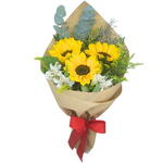 folhagens - 1 un. girassol - 3 un. astroméria - 1 un. embrulho elegante - 1 un.