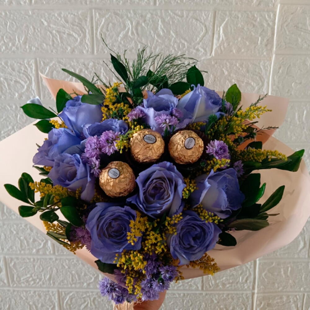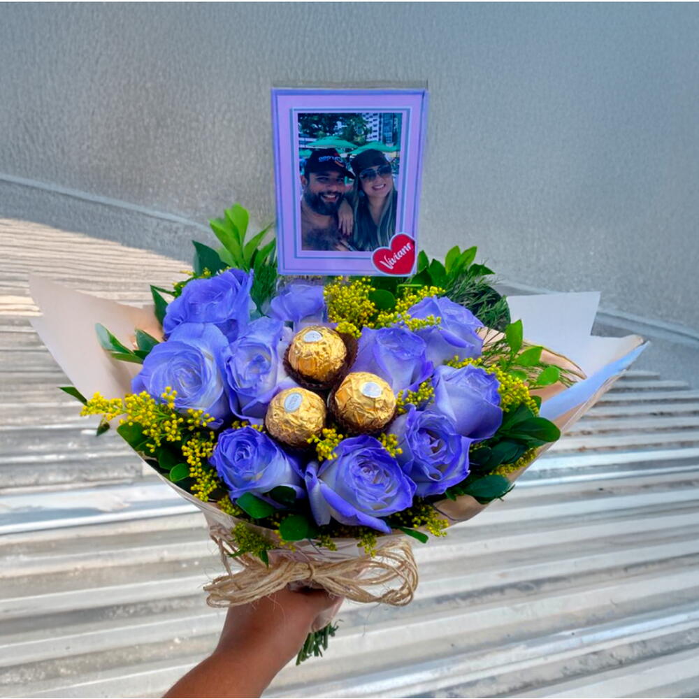 O Buquê Encanto Lilás é uma combinação perfeita de delicadeza e sofisticação. Composto por 10 rosas lilás e 3 chocolates Ferrero Rocher presos em hastes dentro do buquê, cada flor simboliza gratidão, encanto e sentimentos profundos de admiração, tornando este buquê ideal para demonstrar carinho de forma marcante. Os chocolates Ferrero, adiciona um toque doce e luxuoso, criando uma experiência completa de encanto e prazer. Detalhes que fazem a diferença Cada buquê é cuidadosamente elaborado e personalizado com uma plaquinha contendo foto e uma cartinha com mensagem personalizada, garantindo que o presente seja único e inesquecível. A escolha das rosas lilás, combinada ao requinte dos chocolates, transforma este arranjo em um gesto memorável para ocasiões especiais, como aniversários, datas românticas, celebrações familiares ou demonstrações de amizade.