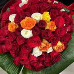 Este buquê é uma verdadeira explosão de cores e fragrâncias cativantes, composto por 100 rosas coloridas nacionais, cuidadosamente selecionadas e arranjadas. Além disso, está elegantemente envolto com folhagem de canoa, complementando a beleza das flores. Este arranjo finaliza com acabamento em tela, o que realça o charme e beleza das flores, proporcionando uma experiência visual incrível. Com certeza será um presente inesquecível para qualquer ocasião especial.