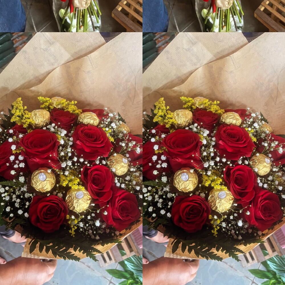 Surpreenda a pessoa especial em sua vida com este maravilhoso presente com chocolate. Composto por um lindo buquê de 10 rosas frescas e um requintado Ferrero Rocher, este presente é perfeito para aqueles momentos em que você quer expressar seu carinho de forma doce e elegante. As cores brilhantes das rosas combinadas com o sabor intenso de um dos mais famosos chocolates do mundo são a combinação perfeita para um presente verdadeiramente memorável.